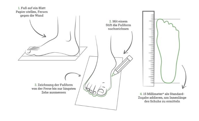 Auf diese Weise können Sie - zumindest annäherungsweise - Ihre Fußgröße ermitteln.